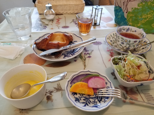 500円で、ブレドールのパンとサラダともう一品と紅茶がセットになっています。パンは他のものとの組み合わせもあって、そちらは600円。まあ、いずれにしてもお得。