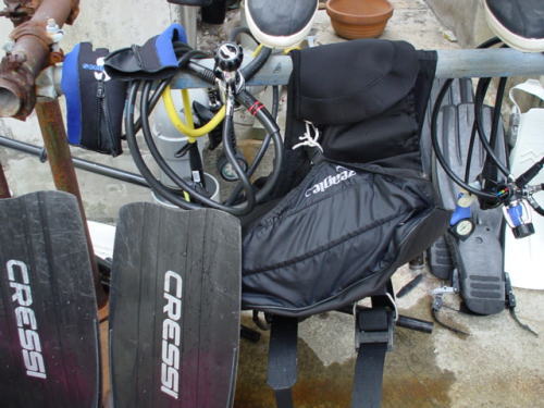ぼくも年配の先輩の話しで聞いたことがあるんですが、昔はBCを使わない時代があったそうです。深度は肺の空気の浮力とフィンキックで調整するというわけです。ハーネスと呼ばれるいわゆる背負子のようなものにタンクをくくりつけていてそこからレギュレーターが伸びているだけだそうです。