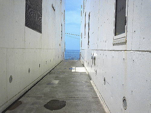 細い通路の先が海の家というかビル