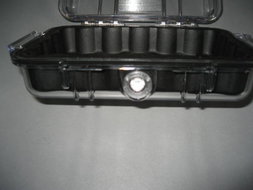 これはプラスチックのケースで密閉できるようになっているものです。ペリカンケースとの違いは、圧力差をなくす逆止弁がないことと、ケースの強度、あまり大きなサイズがないことでしょう。いくつか種類が出ているんですが、たいていタバコケースが入るくらいの大きさで、ひもで首からかけられたり、カラピナを通したりできます。