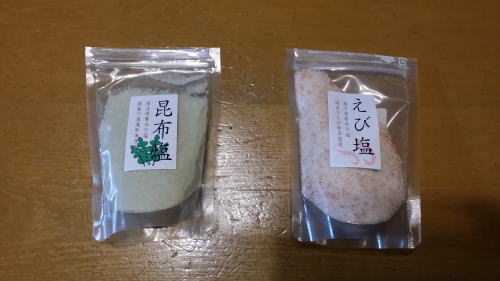 昆布塩とえび塩がおいしいです