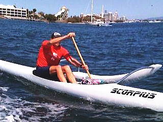 アウトリガーがついている分だけ安定しているんだと思います。それからパドルはシングルです。片一方にしかパドルが付いていないのをシングルパドルといいます。