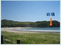 浜の左側がすこし岩場になっていて、堤防があります。スノーケリングや釣りができます。水がキレイなのでスノーケリングには向いている浜でしょう。