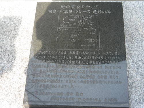 油壺湾に面した油壺公園には「初島・利島ヨットレース 遭難の碑」があり