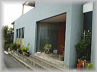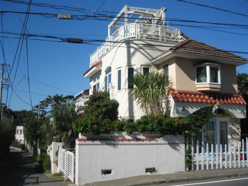ハイビスカスと南欧風の家