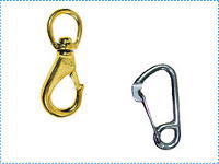 単純に先が輪になっているだけのものから、バネの蓋というか脱落防止の機能がついているもの(いわゆるカラビナ)、一方はS字だけれどももう一方は輪になっていて固定しやすくなっているもの。用途によっていろいろな製品が選べます。