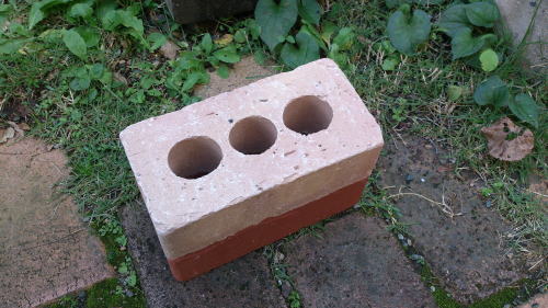 穴あきレンガというのは、モルタルなどの目地材を使わないでレンガを積むために作られてもののようです。で、通販で買えるようなので早速入手。(近くのホームセンターには売ってませんでしたー)