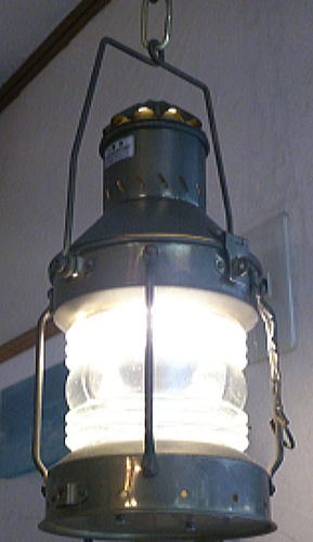 照明器具は真鍮製のマリンライトを模したものです。ゴーリキアイランドブラスという店で買いました。