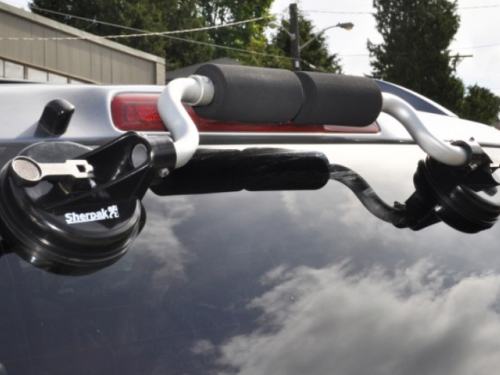 SHERPAK BOAT ROLLERは吸盤でローラーを車に取り付けることができるようになっていて、シーカヤックをローラーに載せて押すとキャリアに積みやすいというものです。