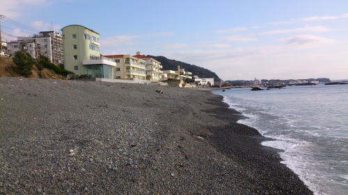 ここは10年くらい前の台風で、ちょっとした崖崩れみたいになりました。それから護岸工事と神奈川県による養浜(「相模湾沿岸海岸侵食対策計画」)というのが始まりまして、まあしょっちゅう工事車両が入っていたわけです。まあ美しい自然を守ろうという建前の公共事業です。