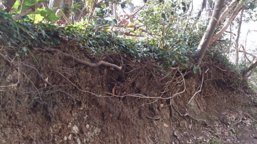 先日散歩してたら、だいぶ土が流された痕が…