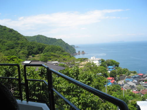 デッキと反対側は林になっています。松と竹という海辺によくある植生ですが、密に繁った林を見ていると海辺というより高原の山荘にいるような感じです。