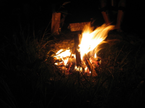 テントを張って、テーブルやチェアやバーナーを用意して、晩飯です。