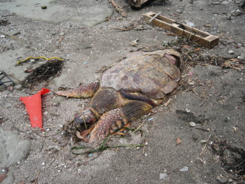 ビーチに亀が打ち上げられていました